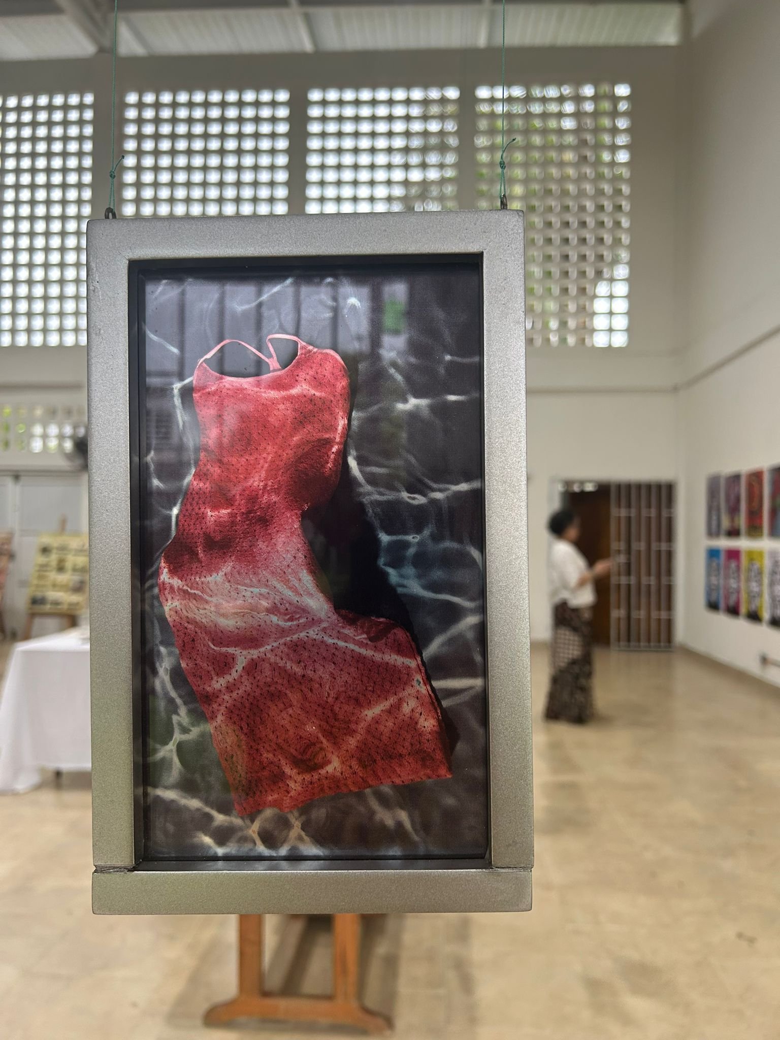 Río Abajo hizo parte de la exposición colectiva Conversing with domestic memories (Yakarta, Indonesia), en febrero de 2025. Gracias Erin Baines, Pilar Riaño, directoras de Transformative Memory; agradezco a Natalia Quiceno por el cuidado de la obra.